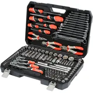 Gola sada 1/4" obsahuje 56 ks nástrojů a doplňků: nástavce, prodlužovací díly, ráčnu s plastovou rukojetí a další příslušenství. Je vyrobena z kvalitních ocelí CrV50BV30, CrV40, CrV6150, CrMo440 a S2 s technologií AS-DRIVE. Ráčna disponuje jemným chodem se 72 zuby. Funkce AS-DRIVE umožňuje vyvinout vyšší kontaktní sílu, neboť kontakt se šroubem probíhá v první třetině styčných ploch a nedochází k dotyku na hranách šestihranu. Tím se zabraňuje poškození hlavy šroubu a ořechy často zvládnou povolit i matice či šrouby již poškozené. Sada je uložena v praktickém kufru pro přehledné uspořádání.